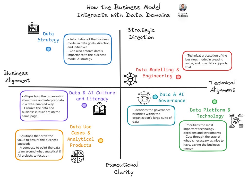 Third, better built data products and outputs. This is a catch-all of sorts. But to be fair, when you have a clear direction to the business model, prioritized initiatives and stakeholder buy-in, it becomes way easier to build analytical products that drive tangible value. These products answer questions that the business is actually asking and needs for its operations. The business model alignment acts as a filter, preventing your team from building things no one will use.